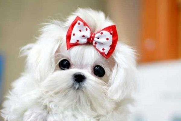 3、茶杯马尔济斯犬:身材修长,身披银白色丝绸般光泽的毛,头部为圆形,眼睛大,性格温顺,极适合宠物犬饲养。