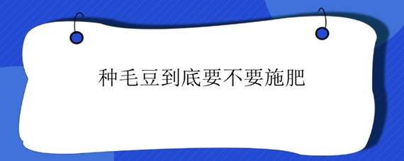 种毛豆到底要不要施肥