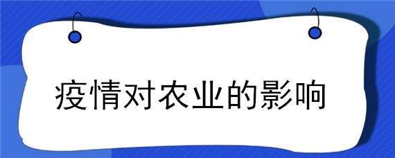 疫情对农业的影响