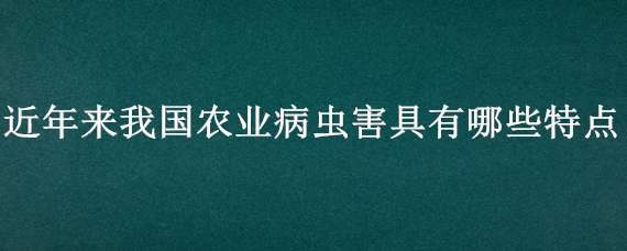 我国是农业大国,而农业病虫害是危害我国农业的主要灾害之一。那近年来我国农业病虫害具有哪些特点?
