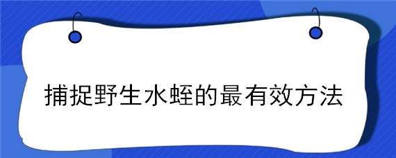 水蛭生活在稻田、沟渠、浅水污秽坑塘等处,嗜吸人畜血液,行动非常敏捷,会波浪式游,也能作尺蠖式移行,每到春暖即行活跃,那捕捉野生水蛭的最有效方法是什么?