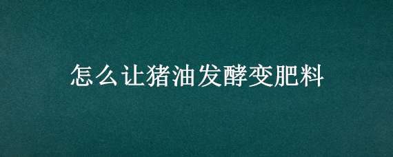 猪油也叫做荤油或猪大油,是猪肉提炼出来的,不过保质期较短,保管不当很容易变质。近日有朋友问到,怎么让猪油发酵变肥料?